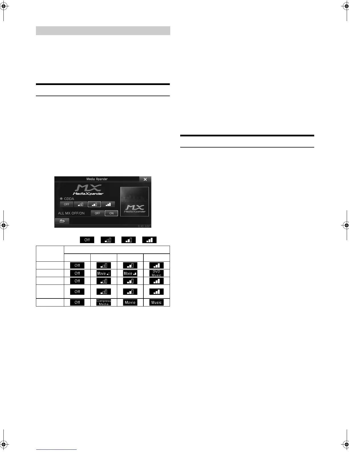 • Setting to MX sets MX mode of each music source to “Off.”