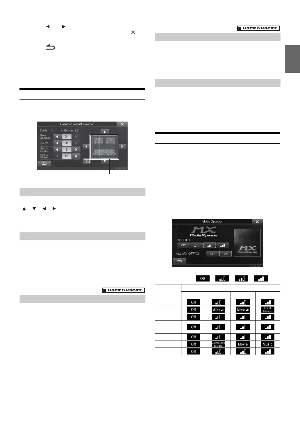 Setting the Balance/Fader/Subwoofer