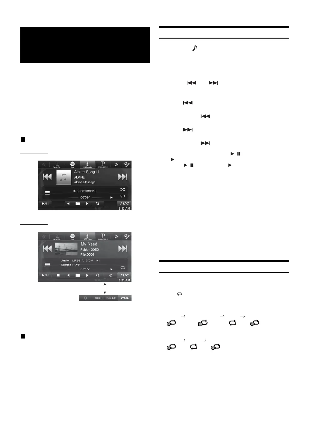 This section explains music operations only. Refer to the DivX