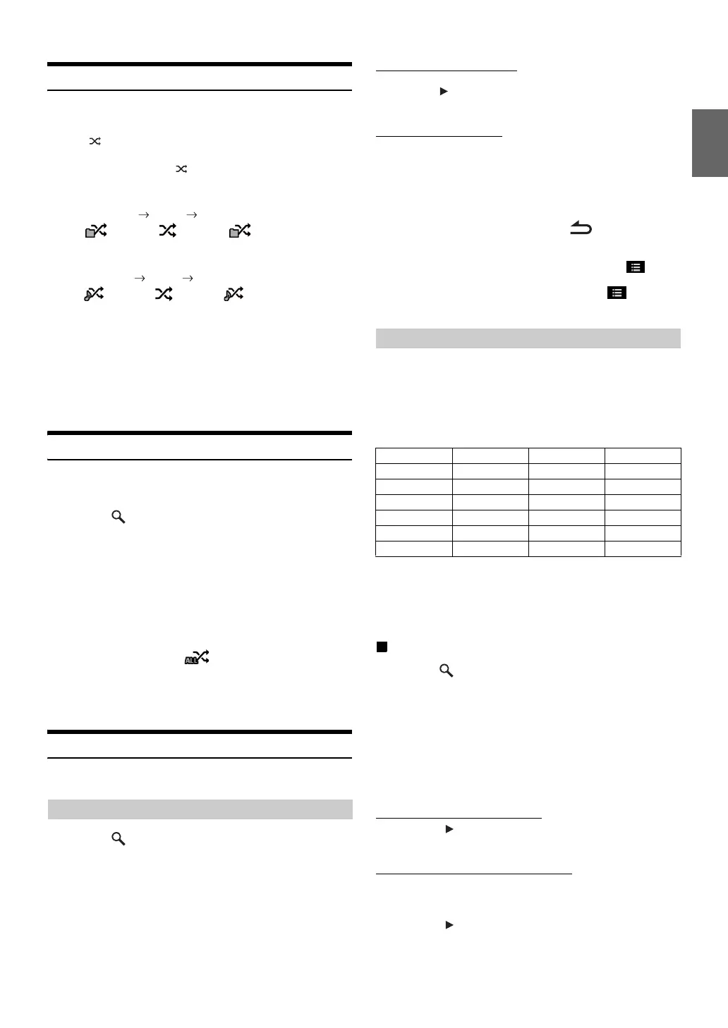 • All songs in the USB memory are played back in random sequence.