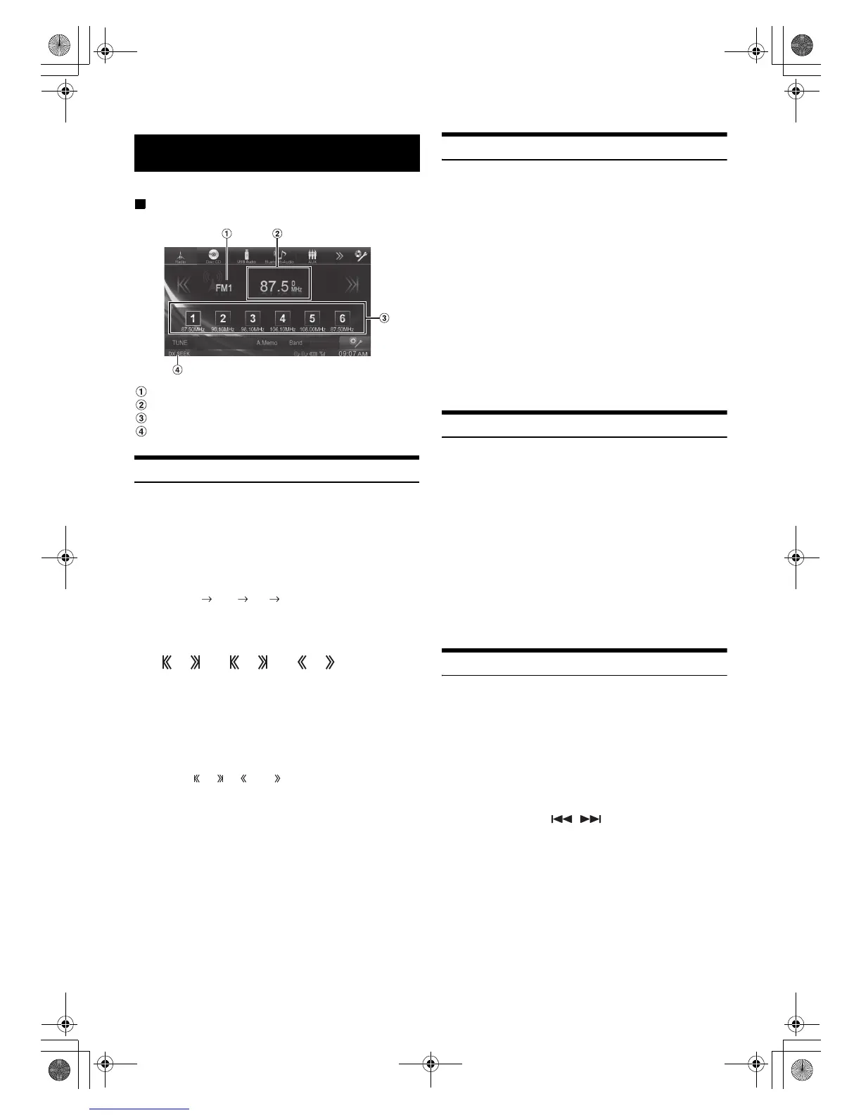 Touch [], [], [] or [] to change the radio
