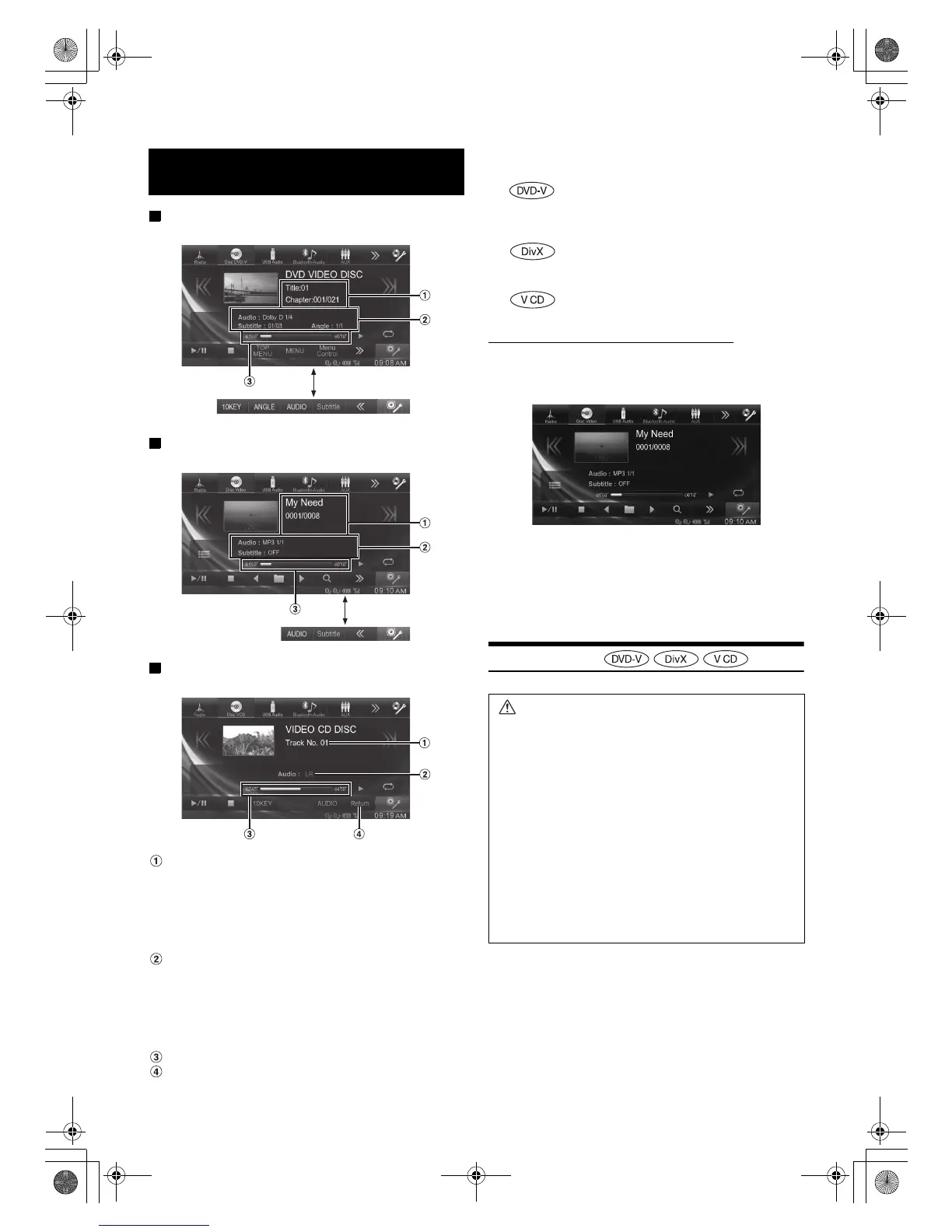Alpine IVE-W554EBT - DVD;Video CD Playback; Disc Types; DVD;Video CD Operation Screen; Playing a Disc