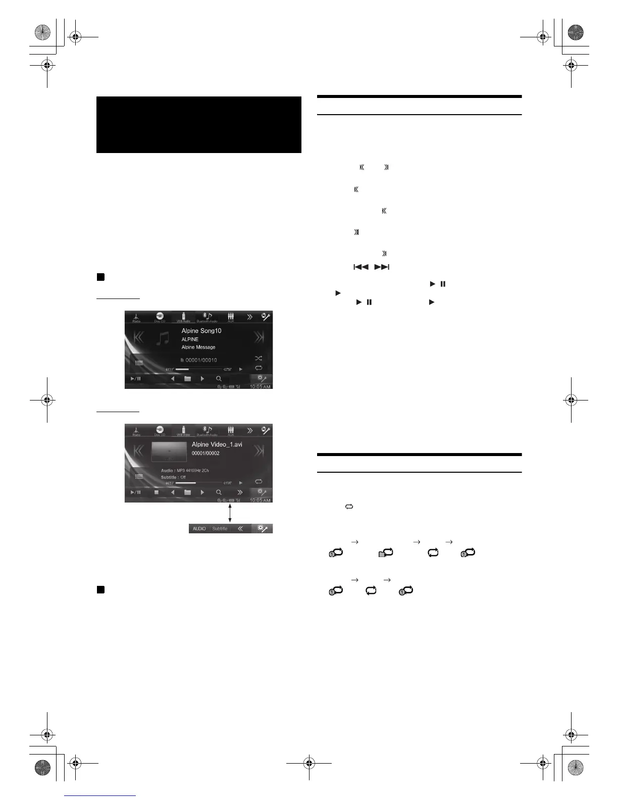 Alpine IVE-W554EBT - USB Memory Playback; Playback; Repeat Play; M.I.X. (Random Play)