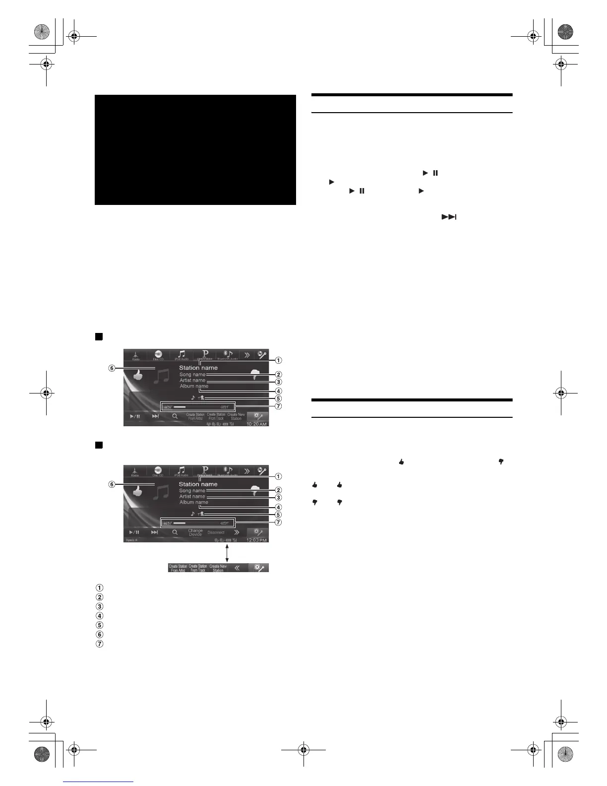 Display example for BLUETOOTH Pandora Radio