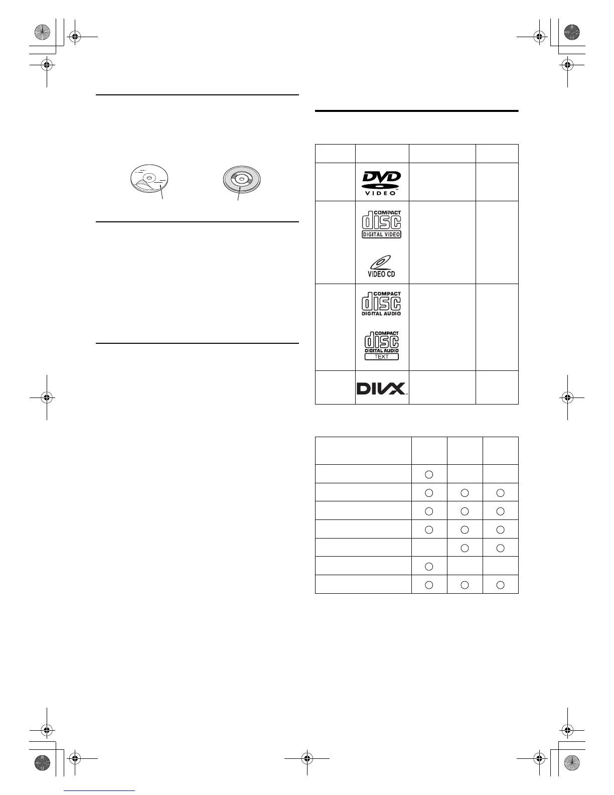 The discs listed below can be played on this unit.