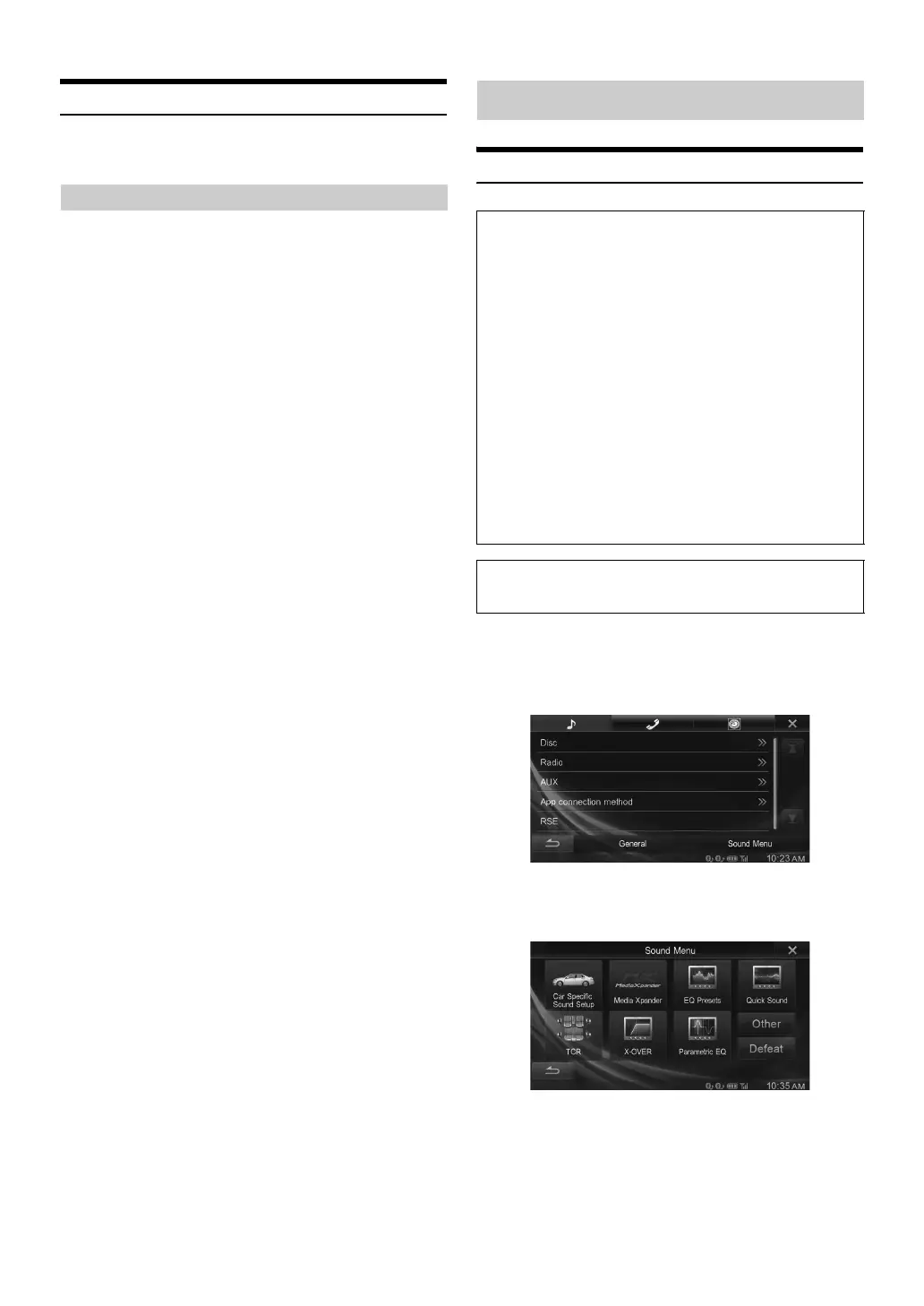 Setting items: Car Specific Sound Setup* / Media Xpander* /