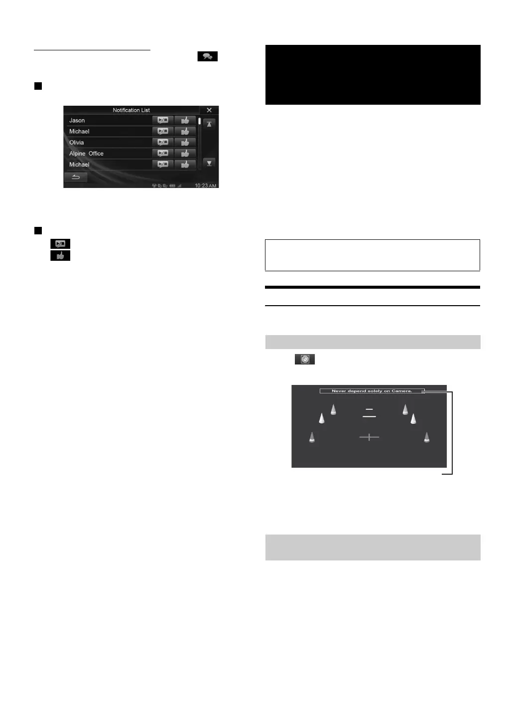• Never depend solely on the camera when backing up. Always turn