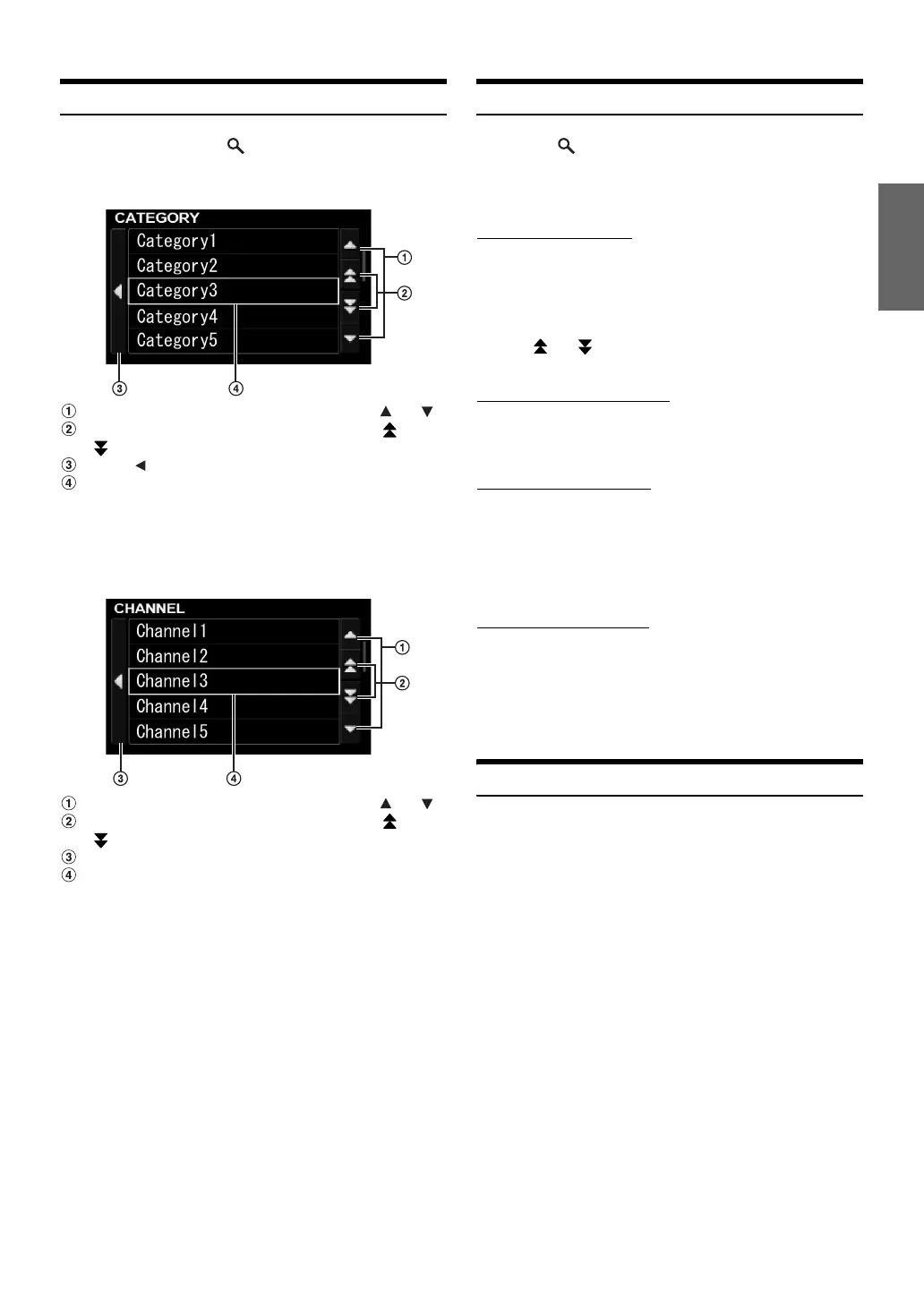 • Touch [ ] or [ ] on the channel name search screen, the category