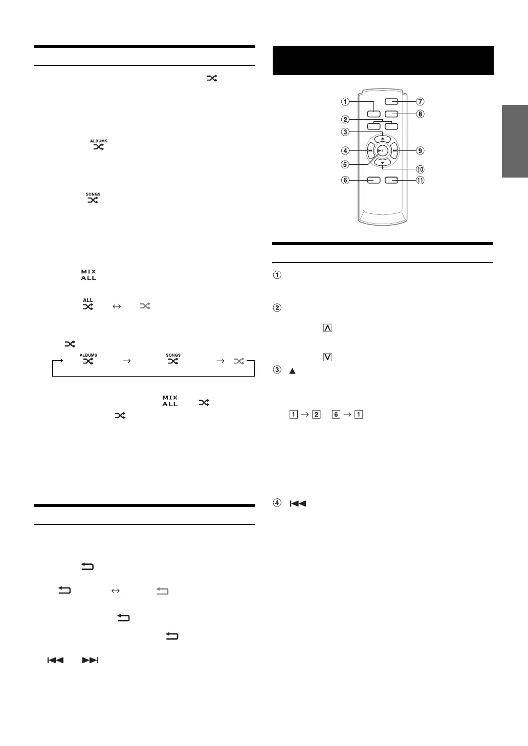 MP3/WMA/AAC mode: Switches Folder/Playlist/Artist/