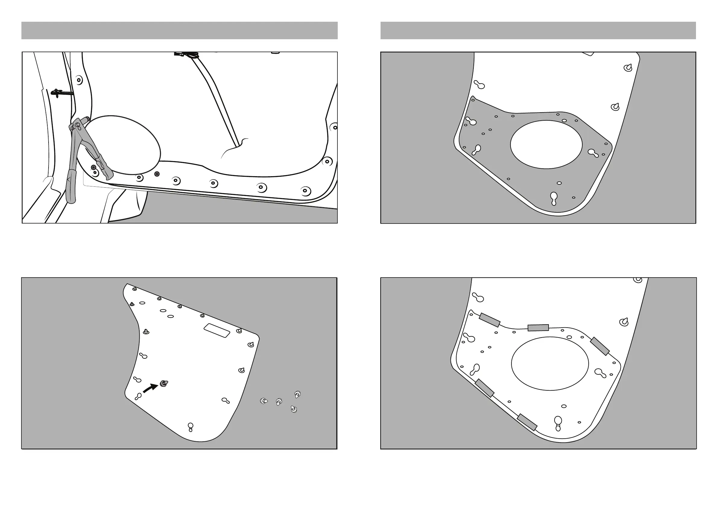 Turn over the Rear door cards. Remove the bottom plastic push clips from the card.