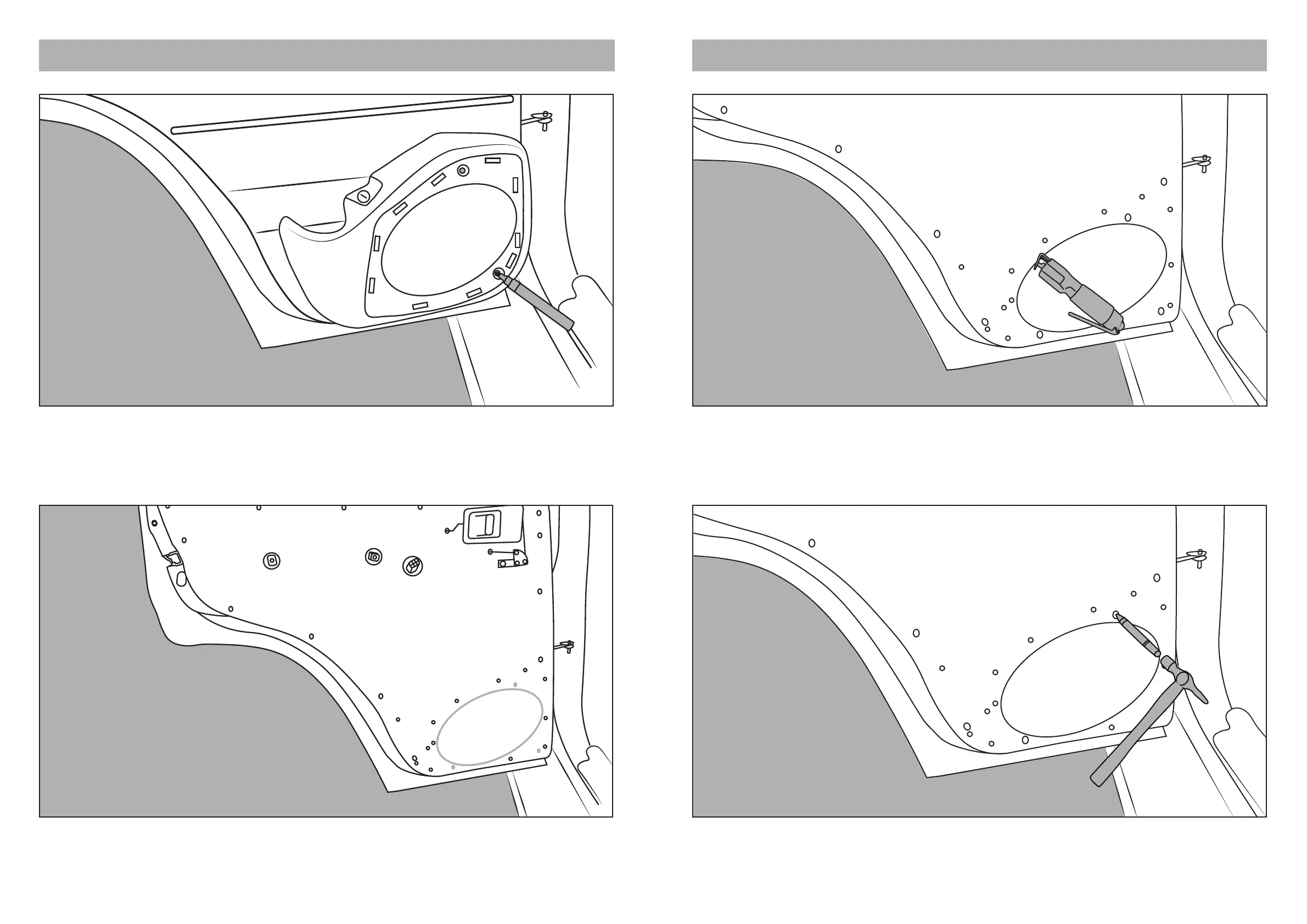 Once the speaker hole and rivnut locations have been marked, remove the door card