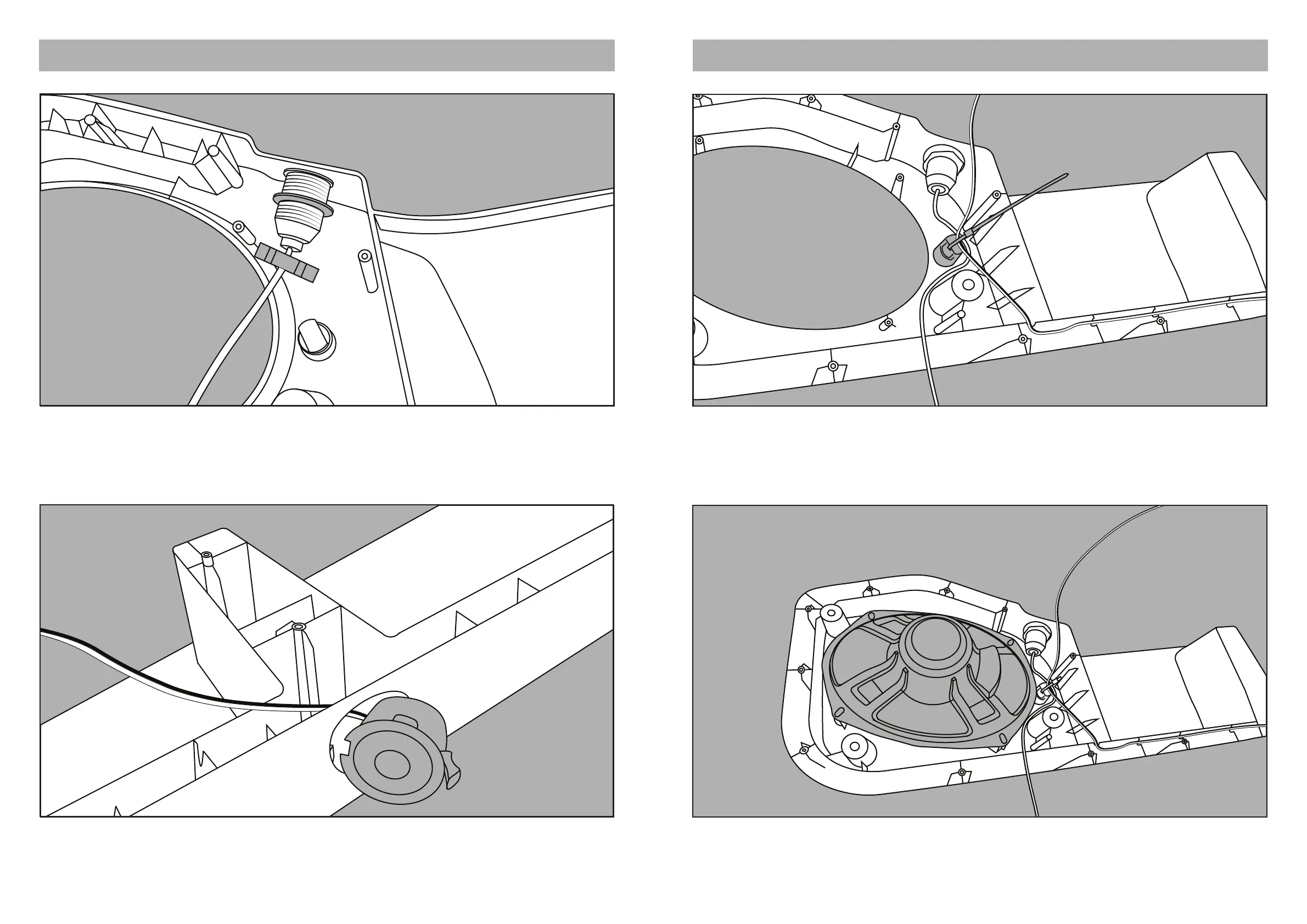 channels and exiting to the speaker area of the exocasing. Then secure the cables