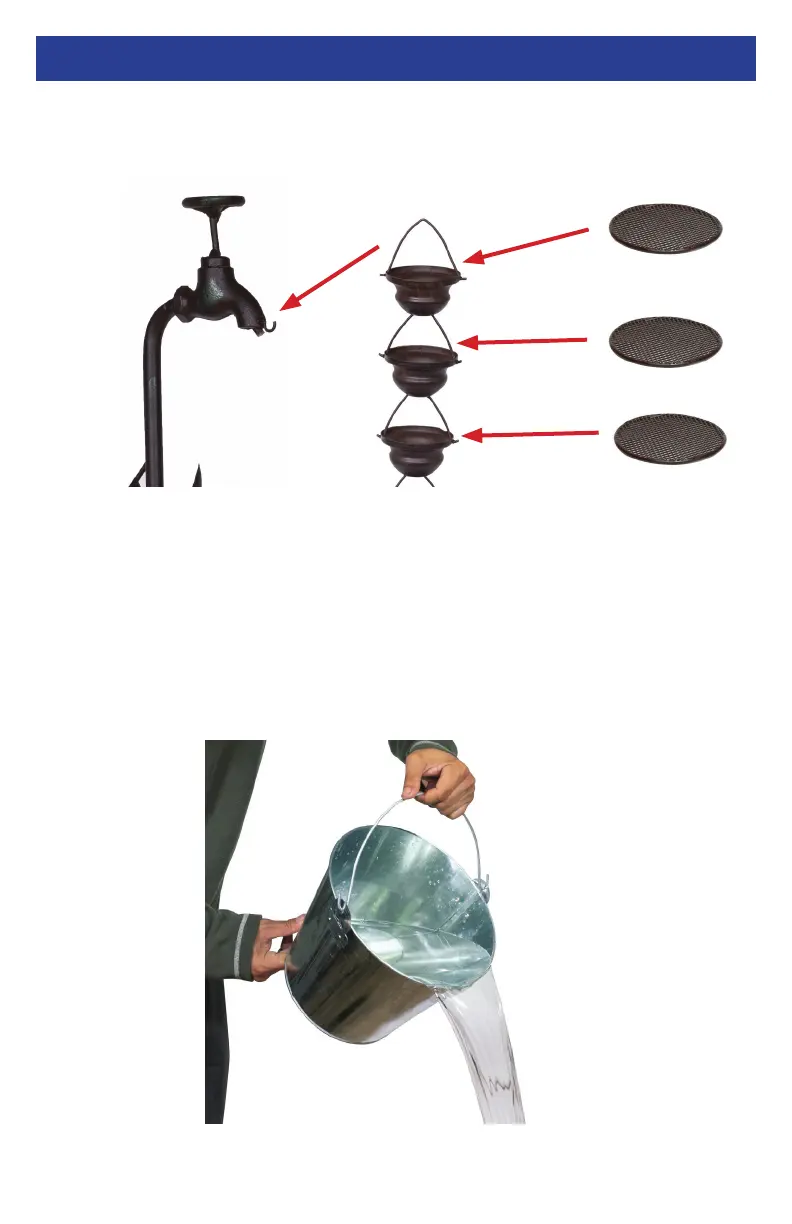6. Gently pour water into the fountain basin, being careful not to