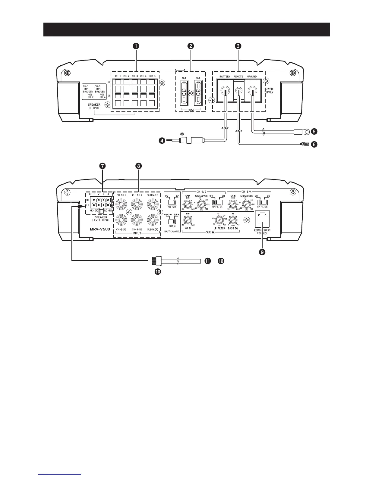 Be sure to add an in-line fuse with the battery lead as close as possible to the battery’s positive (+) terminal.
