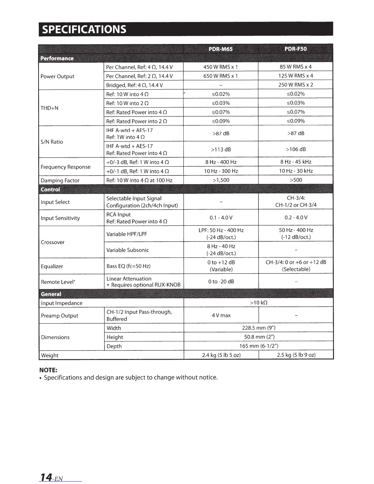 Alpine PDR-M65 - SPECIFICATIONS