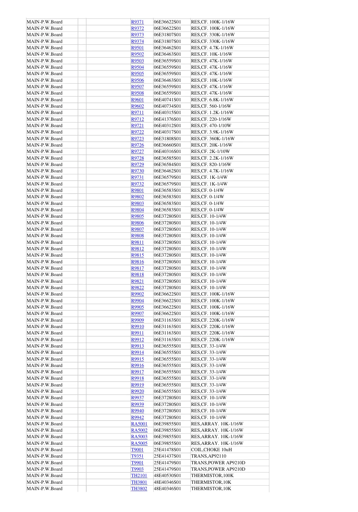 MAIN-P.W.Board R9371 06E36622S01 RES,CF. 100K-1/16W