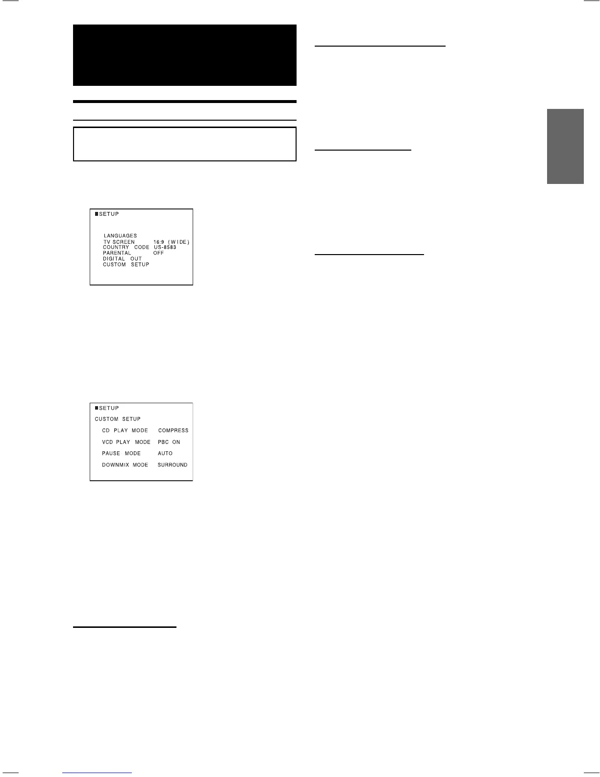 Setting contents: CD-DA / COMPRESSED AUDIO
