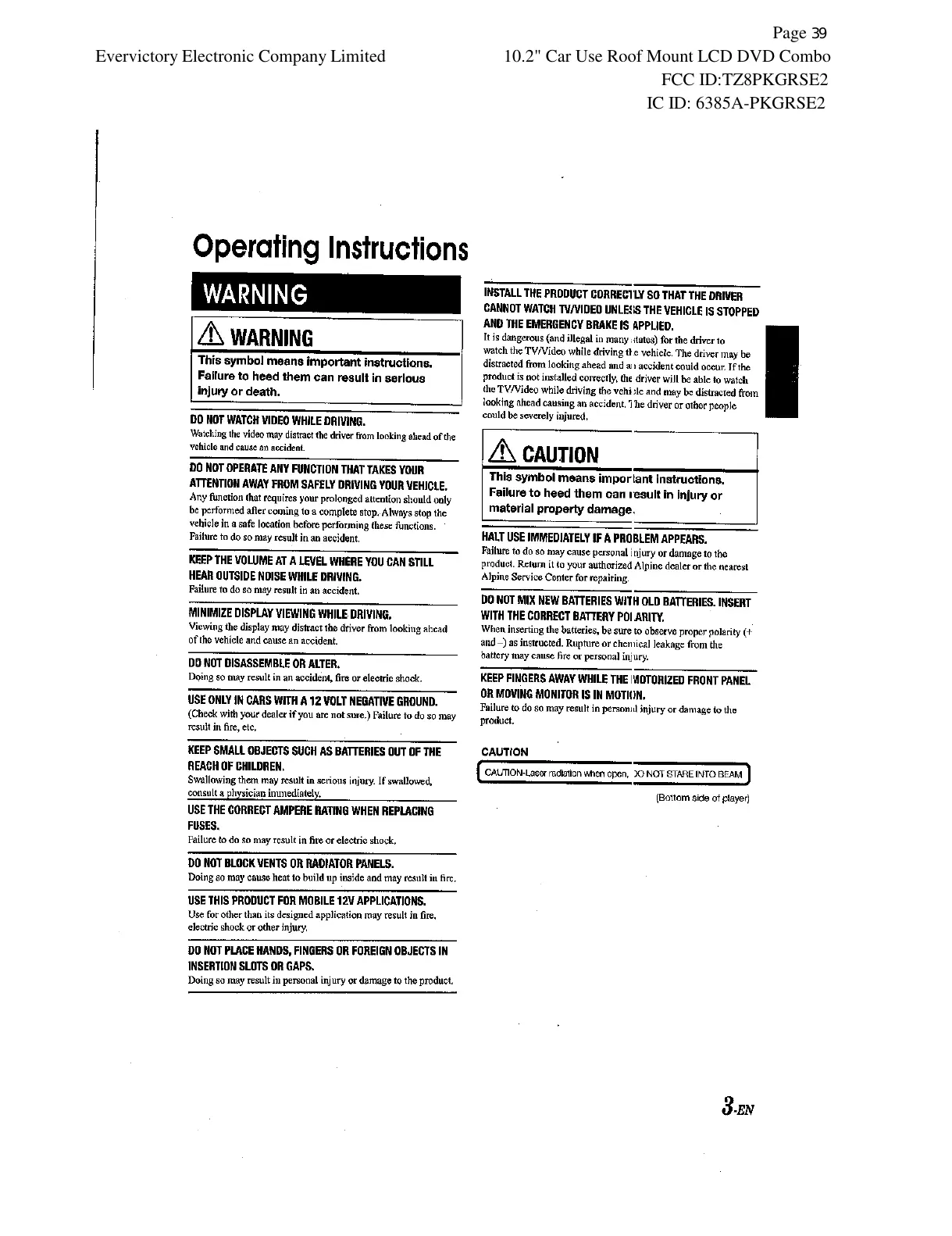 FCC ID:TZ8PKGRSE2