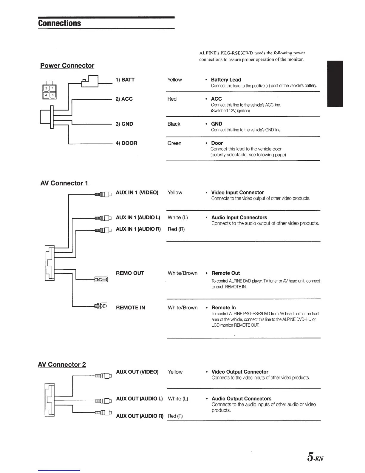 Alpine PKG-RSE3DVD - System Wiring Connections; Power Supply Wiring; AV and Remote Signal Wiring