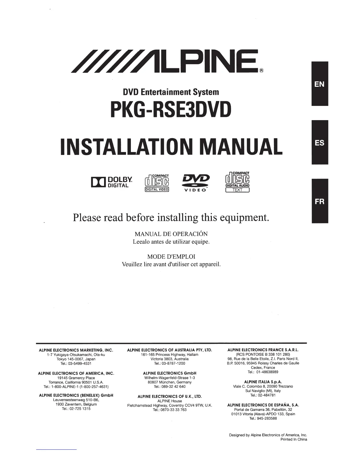 Other manuals for Alpine PKG-RSE3DVD