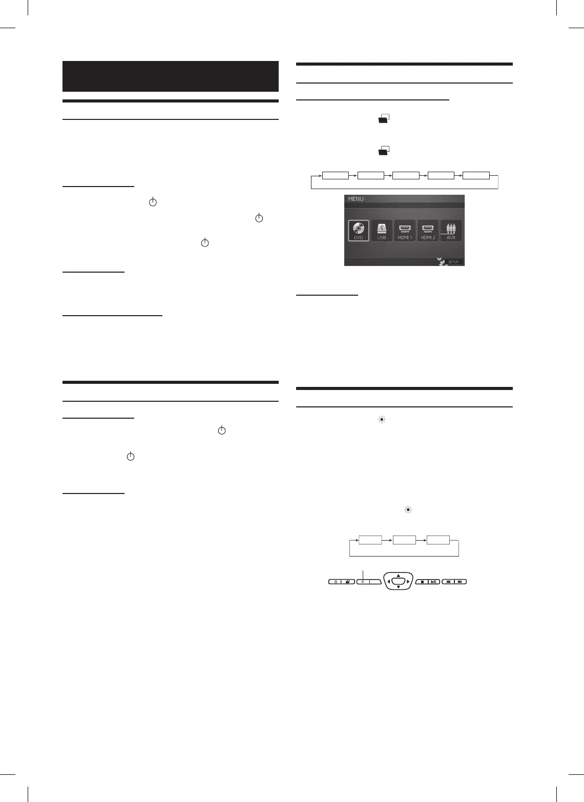 Press source buttons (DVD, USB, HDMI1, HDMI2 and