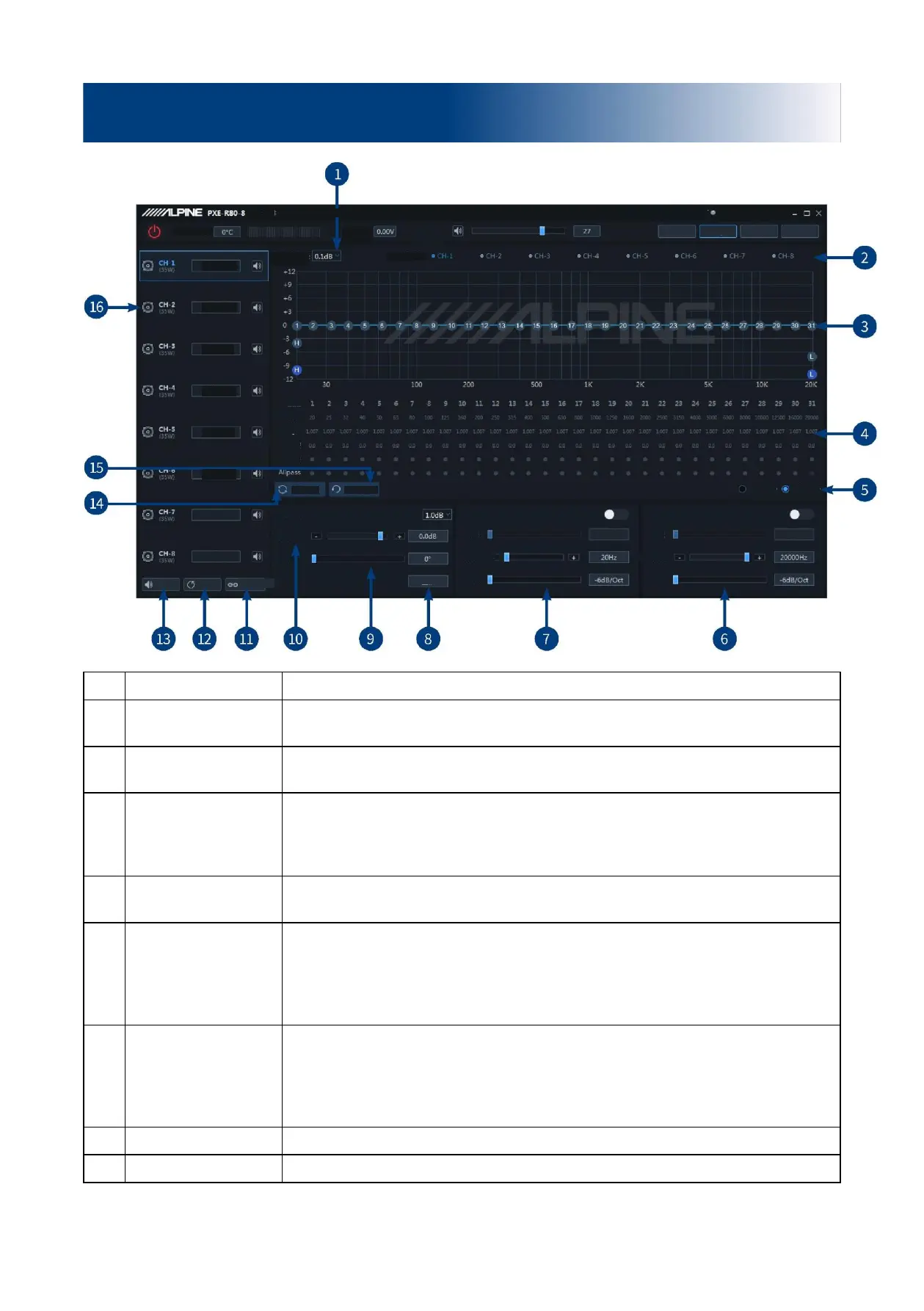 Adjust the frequency, Q value and gain of the output channel. The frequency and Q