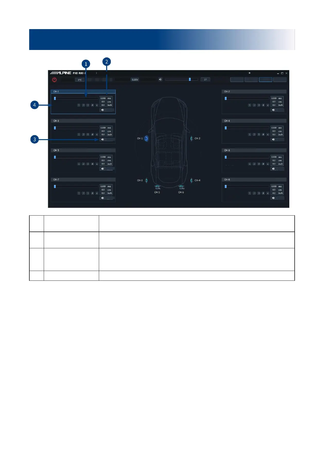 Select the corresponding speaker, push the fader left and right to adjust the delay, or
