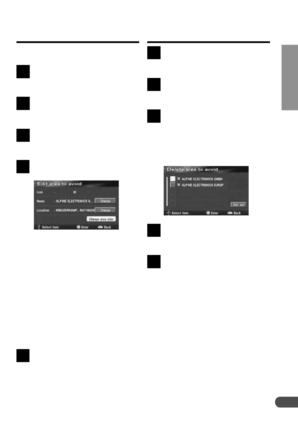 displayed. Select the avoid area to