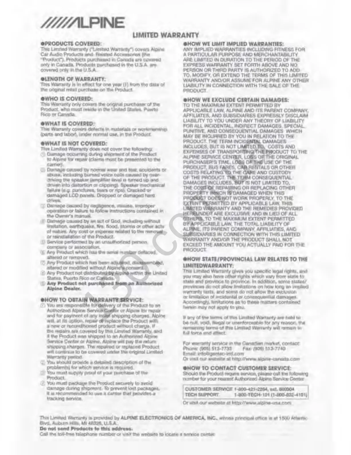 nearest Authorized Alpine Service Center.