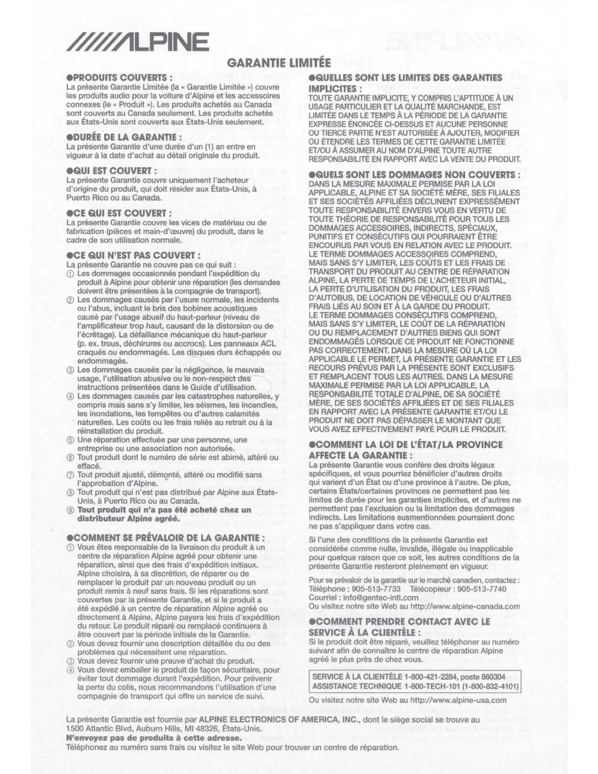 Alpine S2-S40C - Garantie Limitee