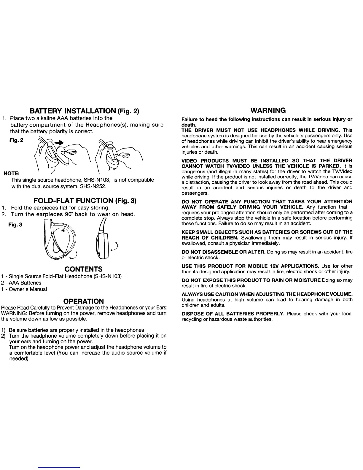 1 - Single Source Fold-Flat Headphone (SHS-N1