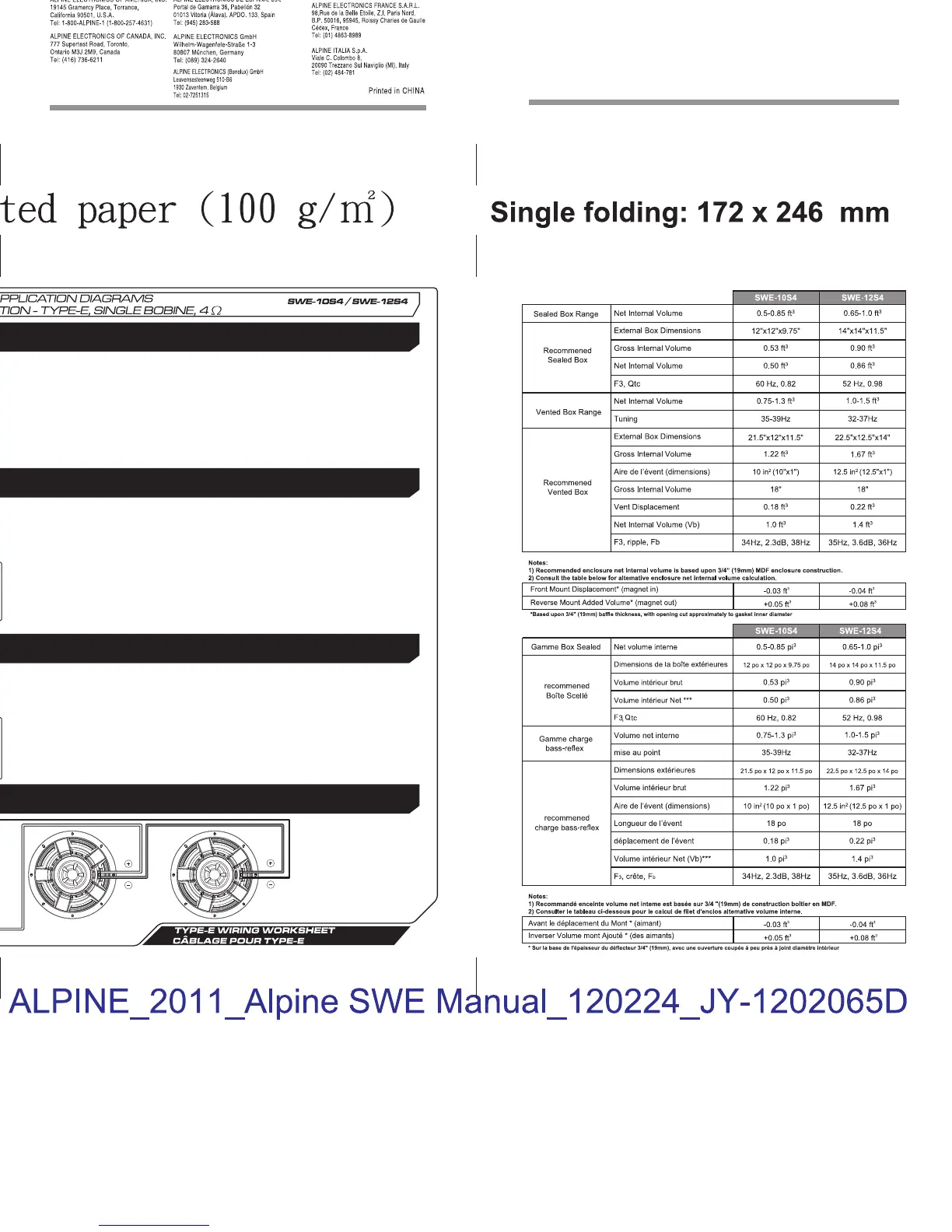 Alpine SWE-10S4 - Enclosure and Application; Enclosure Recommendations; Wiring Worksheet