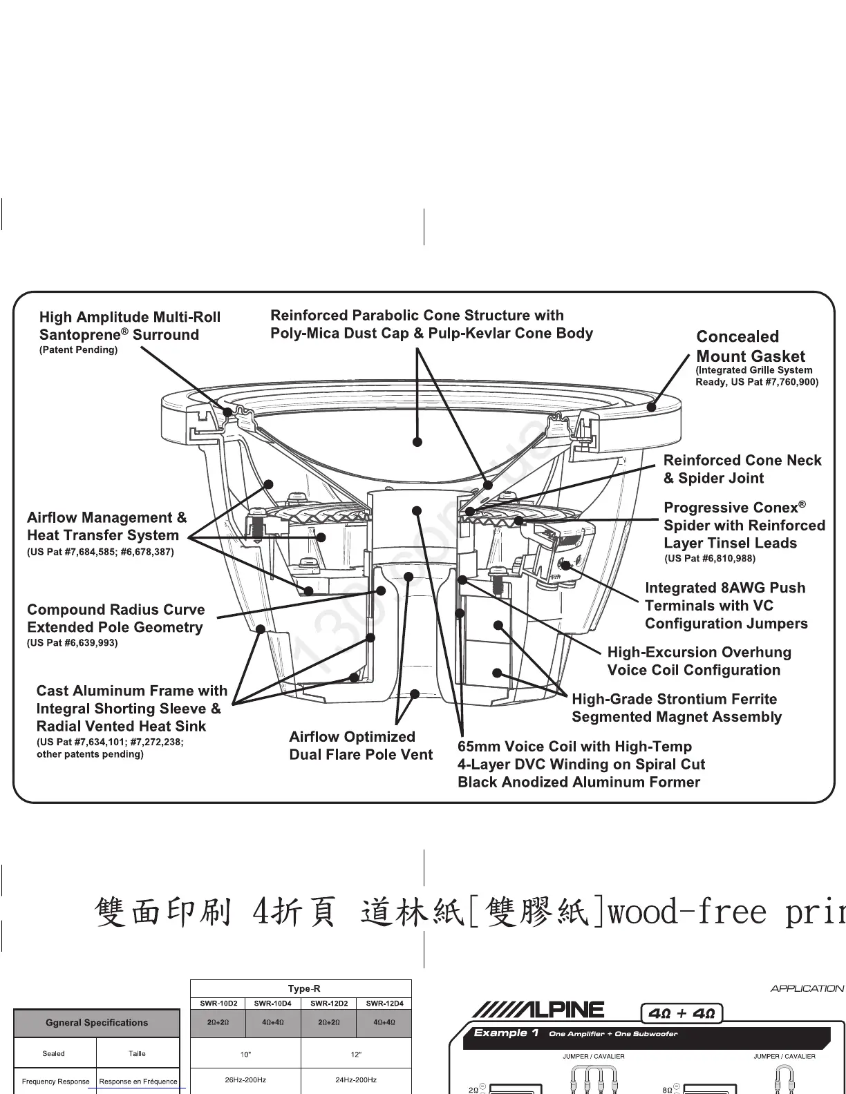 Alpine SWR-12D4 - Subwoofer Construction Features; Key Component Features