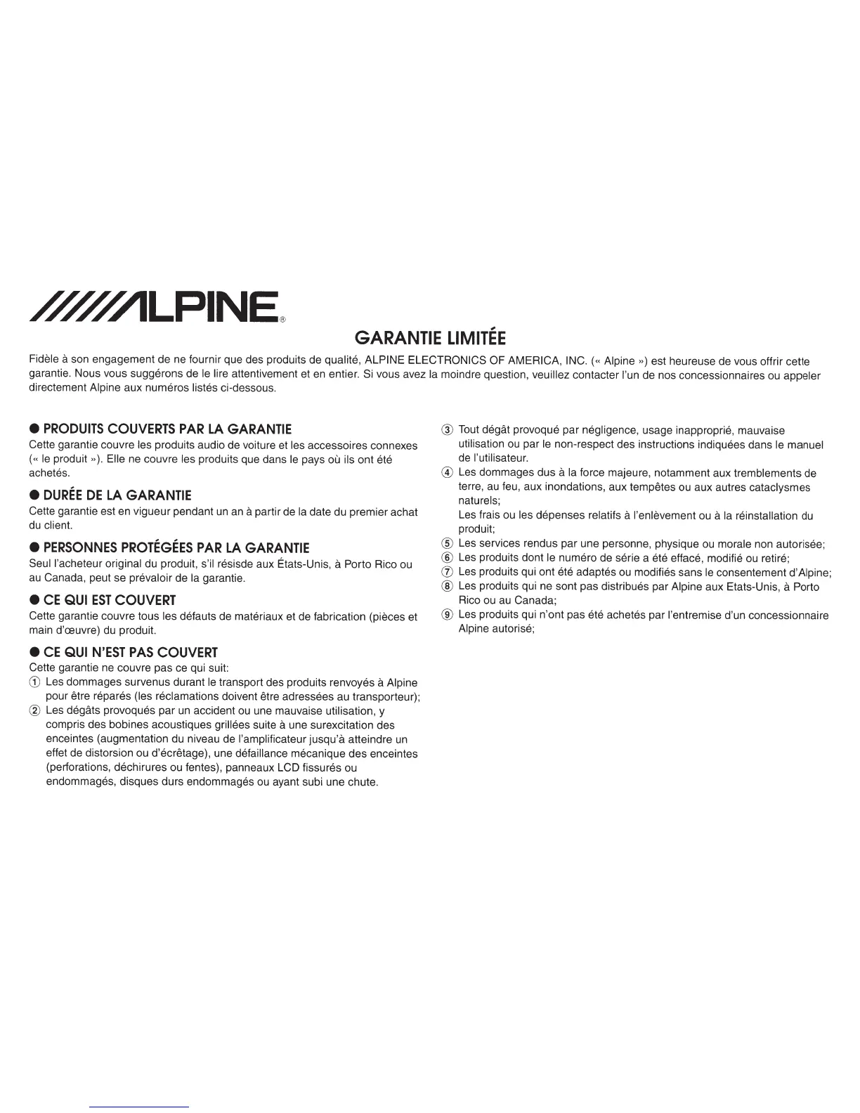 Cette garantie couvre les produits audio de voiture et les accessoires connexes