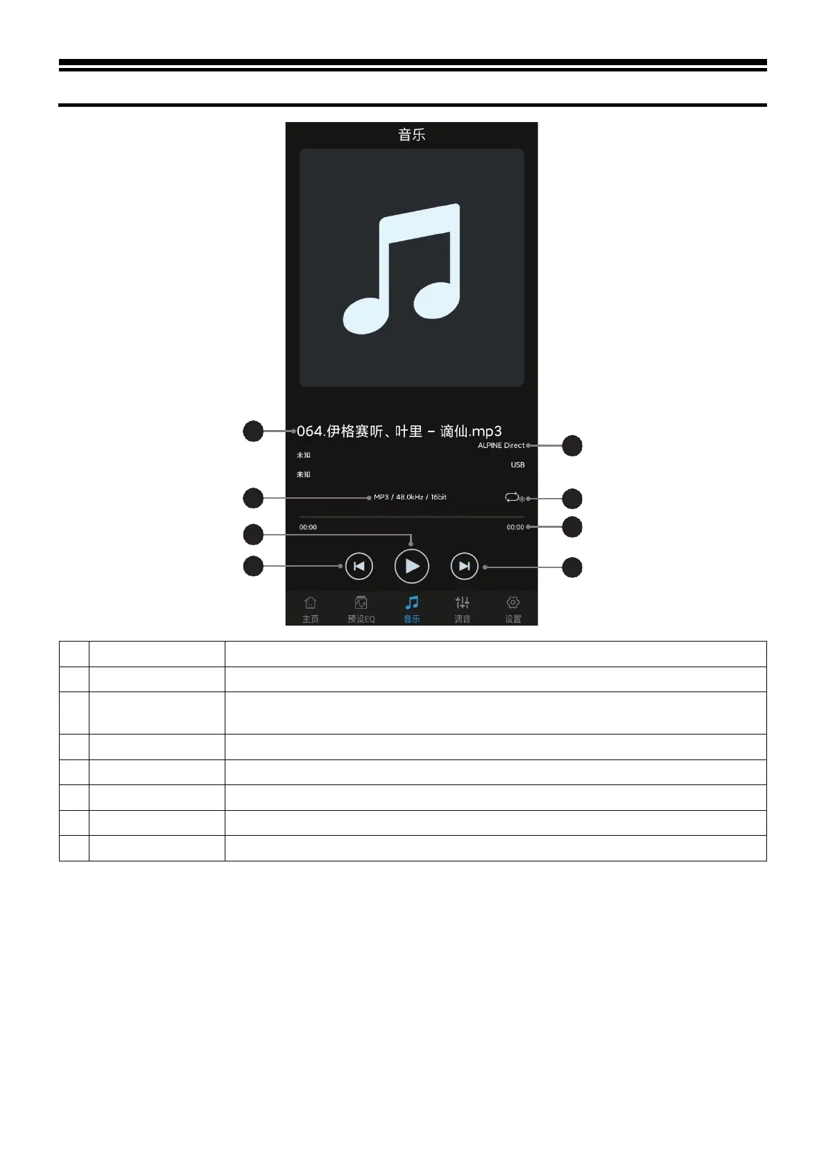 Alpine UTX-M06 - Description of Mobile APP - Music