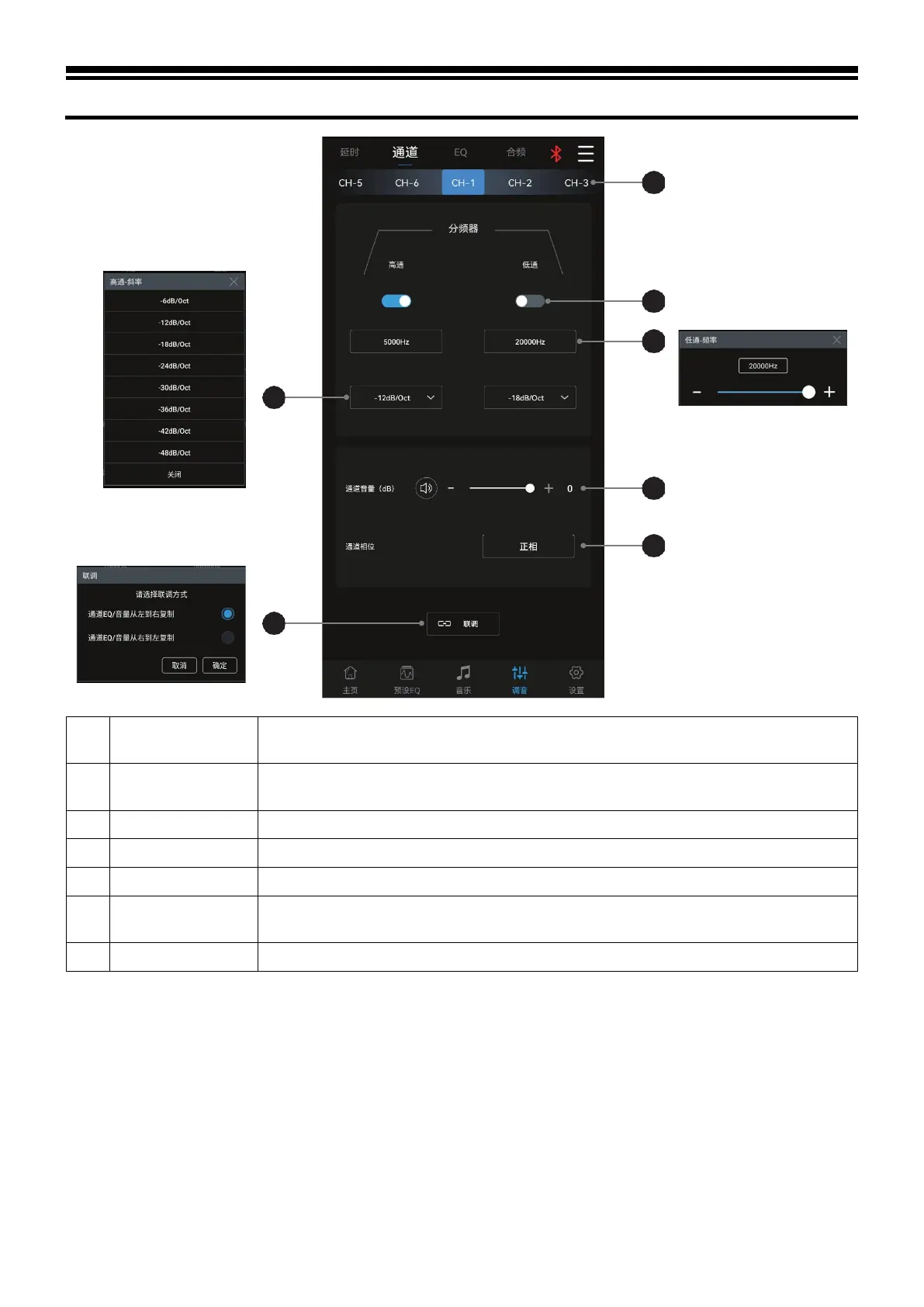 Slide left and right to select the output channel to set. There are 6 channels to choose from.