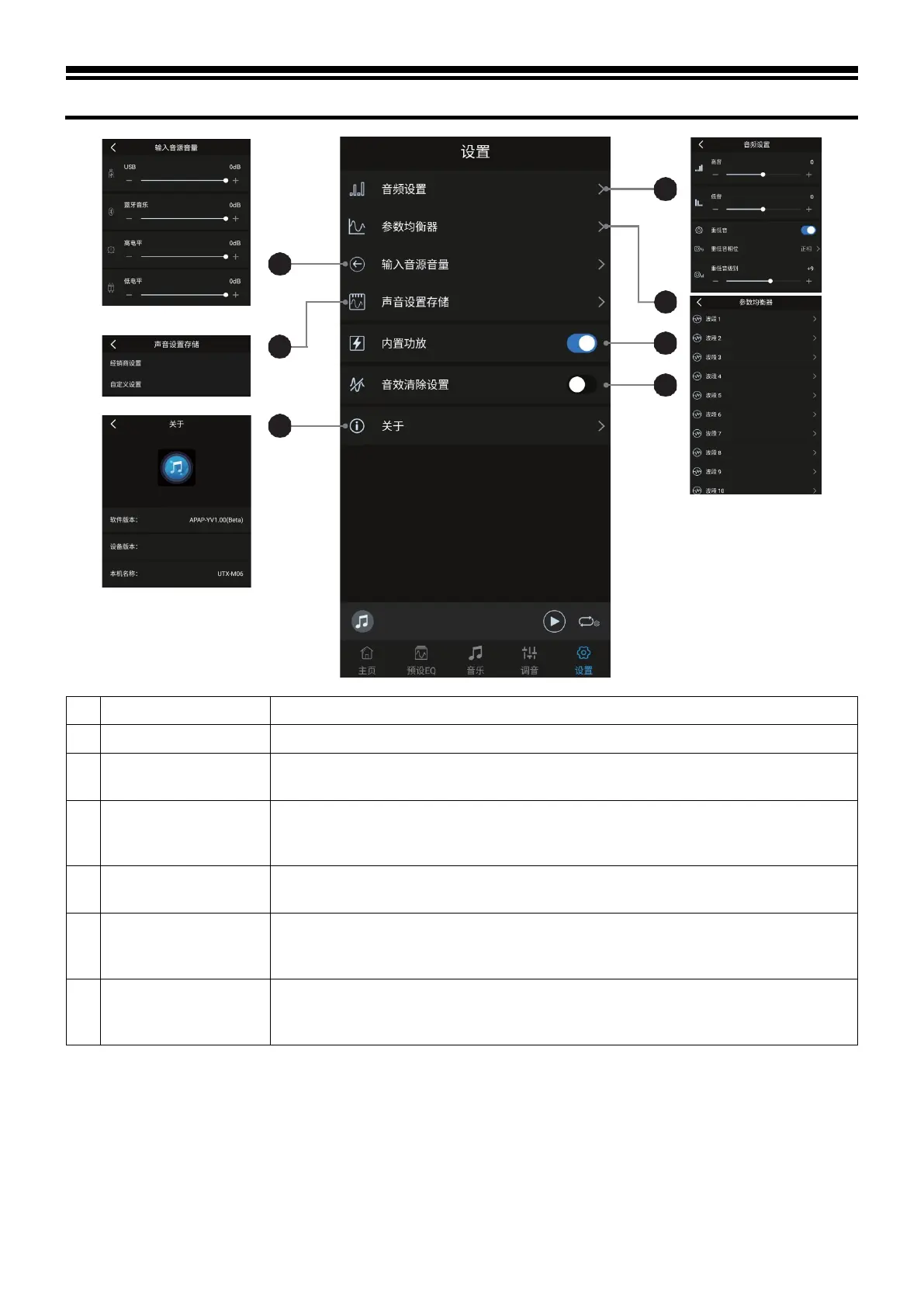 Adjust the volume of audio sources including USB, Bluetooth music, High level and