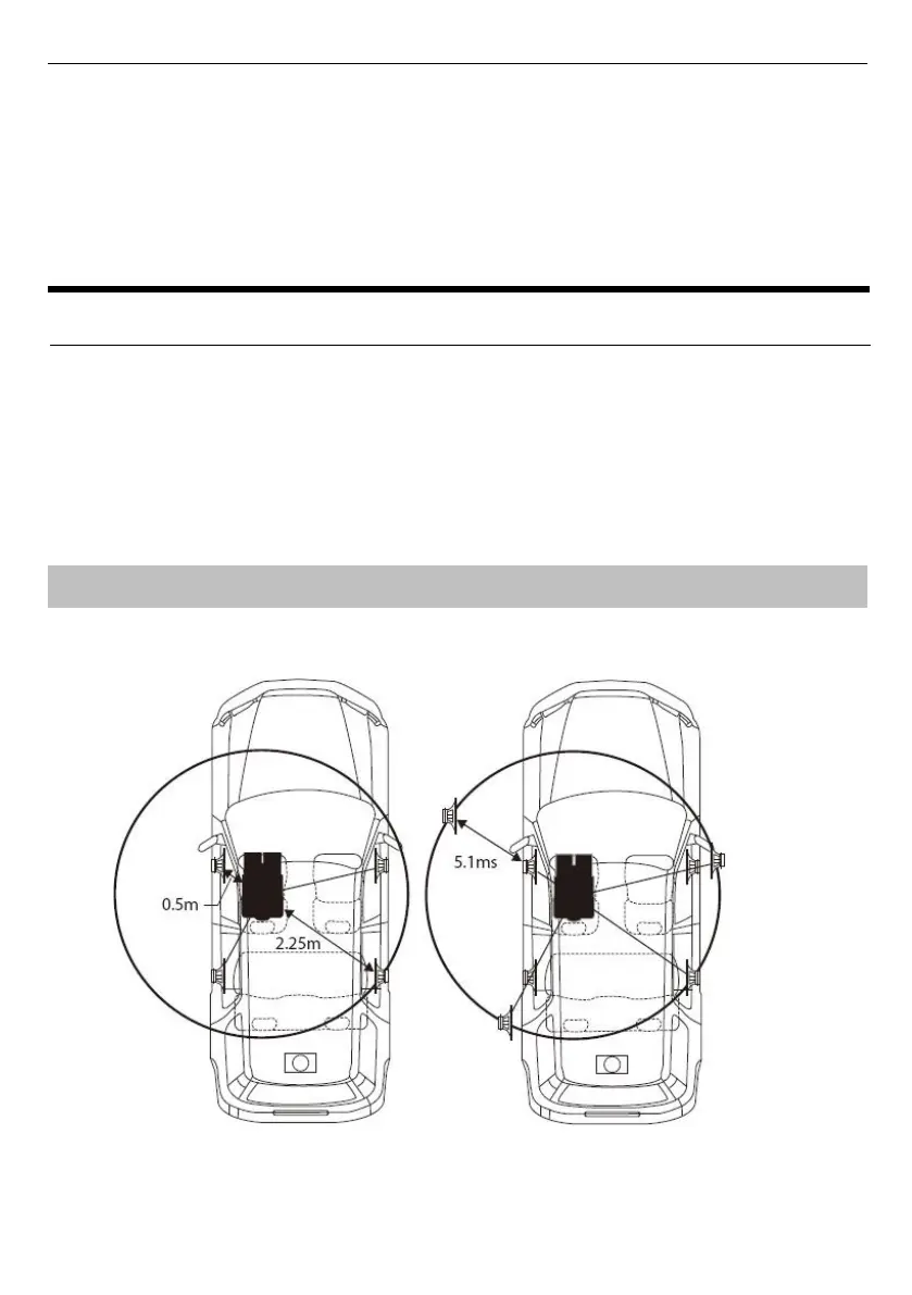 The distance between the listener and the interior speakers can vary greatly due to different speaker placements.