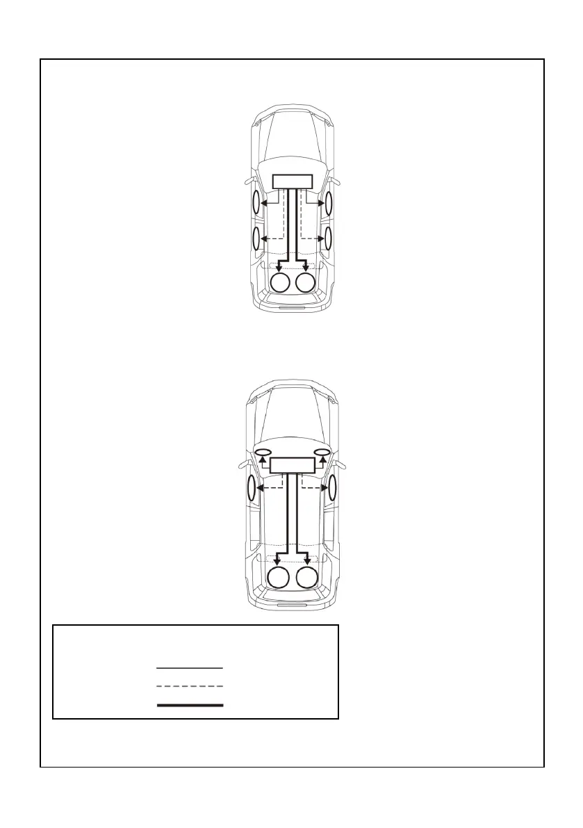 Frequency range is output with high frequency for front/rear speakers and low frequency for subwoofers.