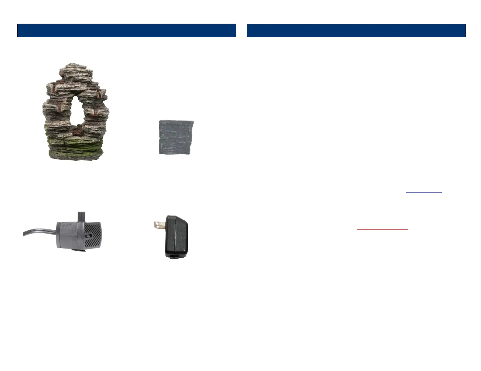 warranty. Please note: for fountains, it is normal for some splashing to occur and protecting the