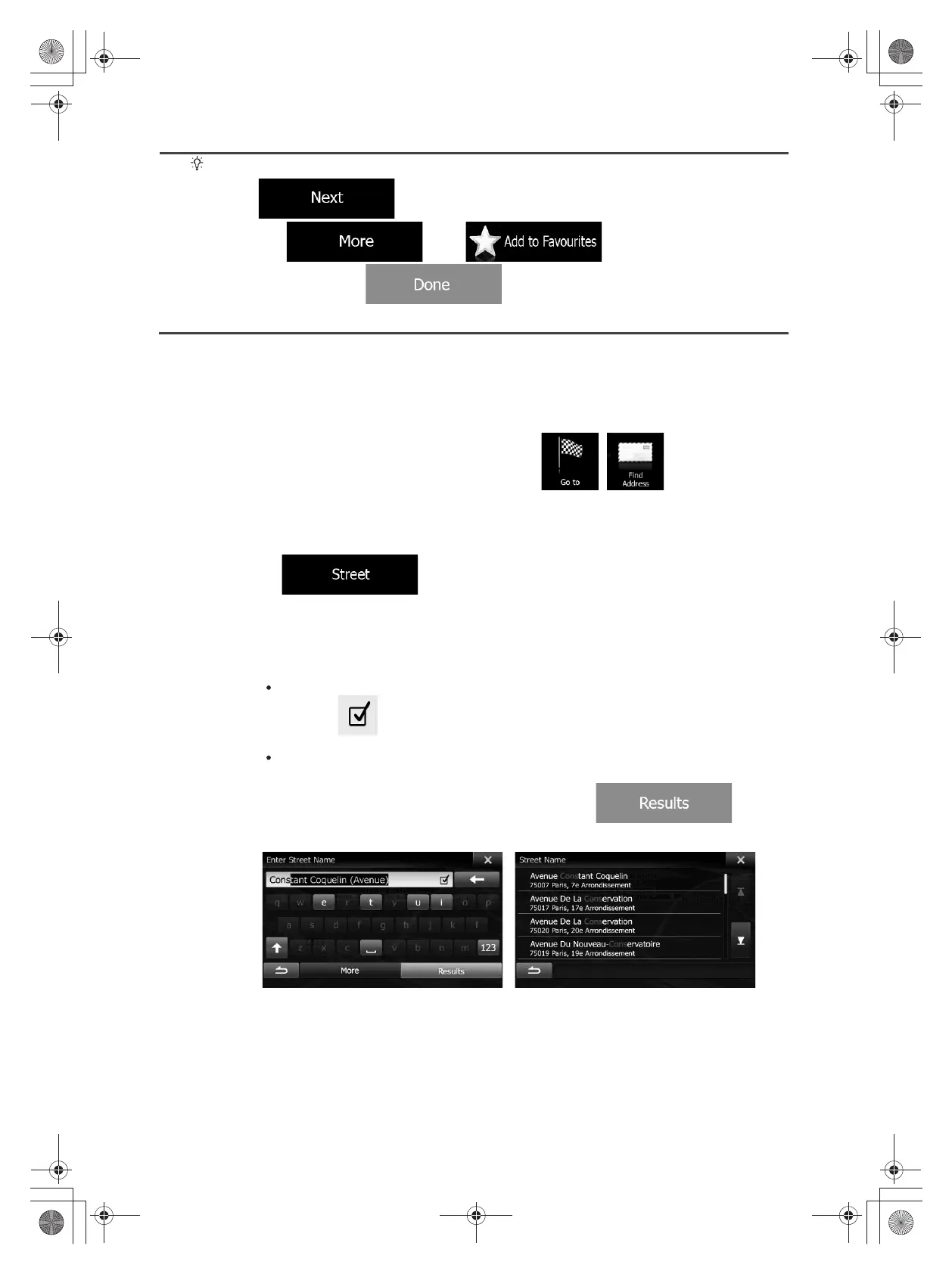 b. Start entering the street name on the keyboard.