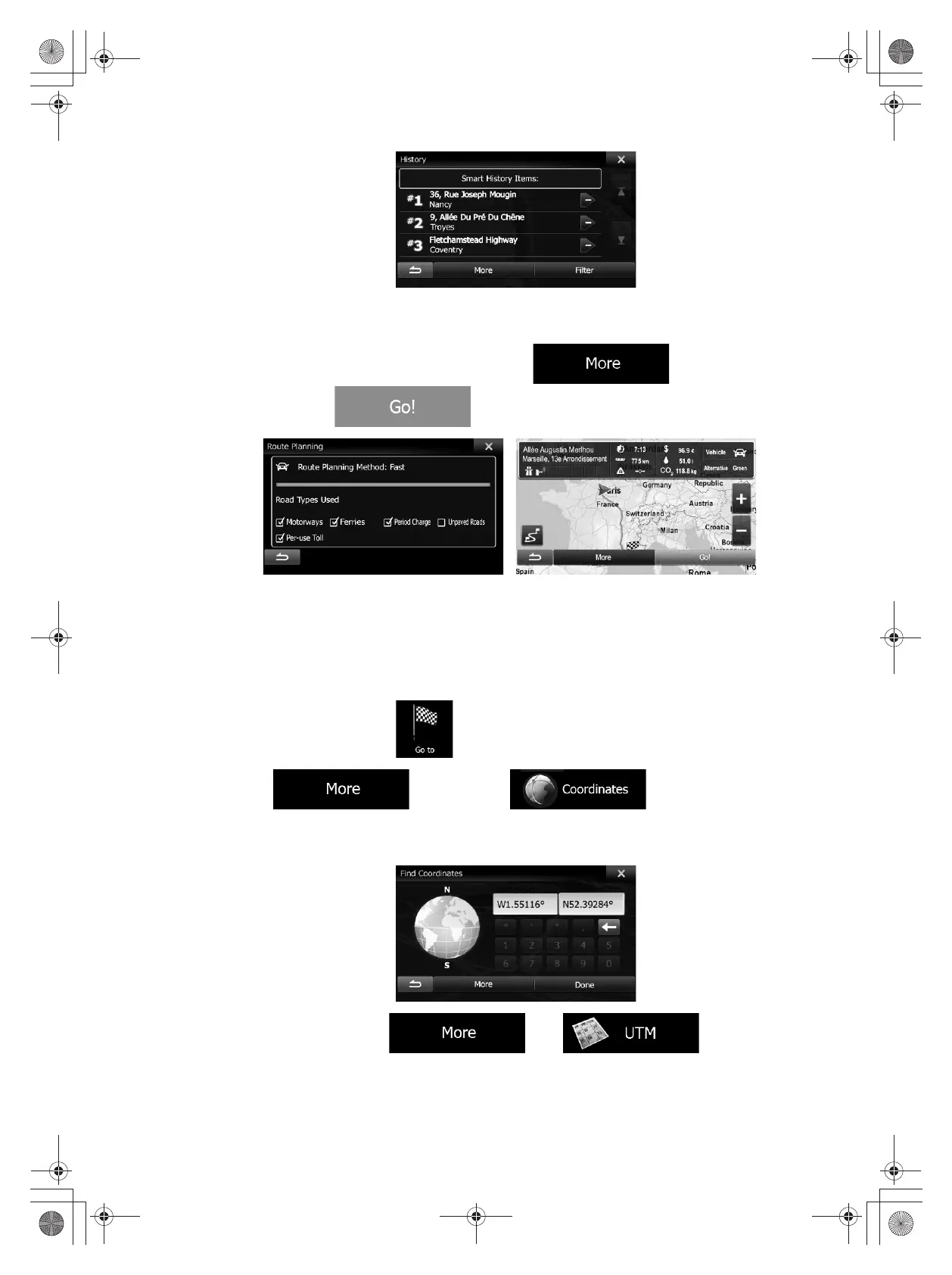 You can also select a destination by entering its coordinate. Do as follows: