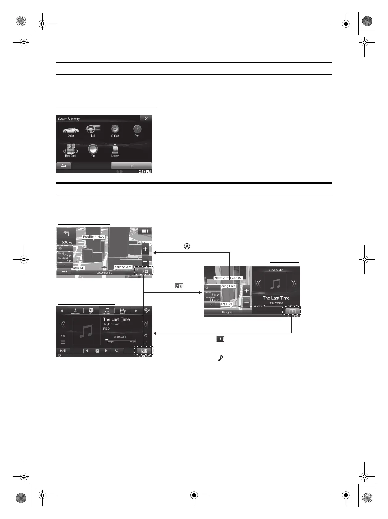 If you want to display the music playback screen while route guidance is displayed, etc., you can display the Navigation and Audio/Visual screens