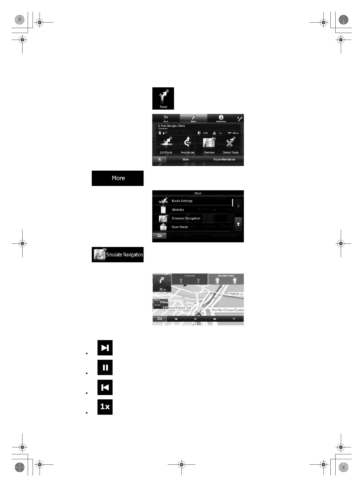 3. Tap . The simulation starts from the starting point of the route, and
