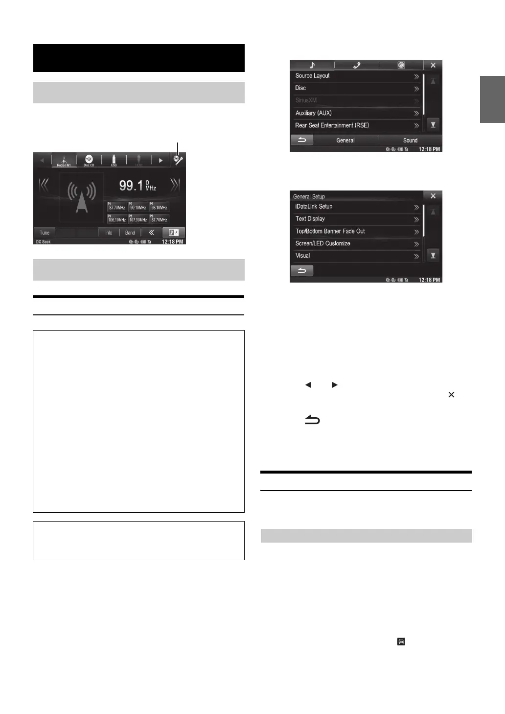 General Setup Menu, as long as the car’s ignition has not been