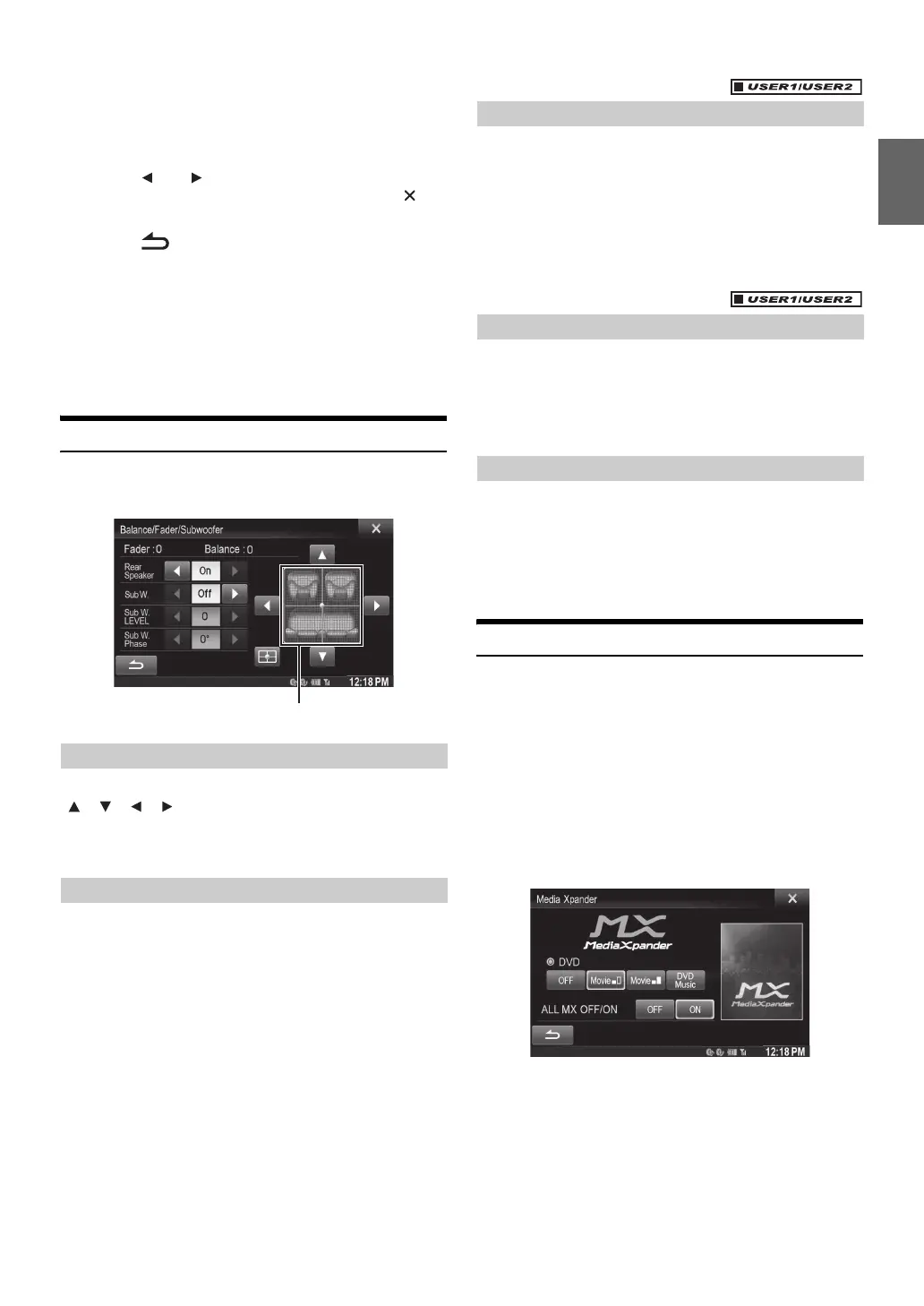 Setting the Balance/Fader/Subwoofer