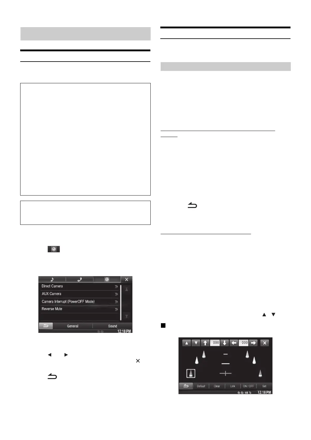 Setting items: Direct Camera / AUX Camera / Camera Interrupt