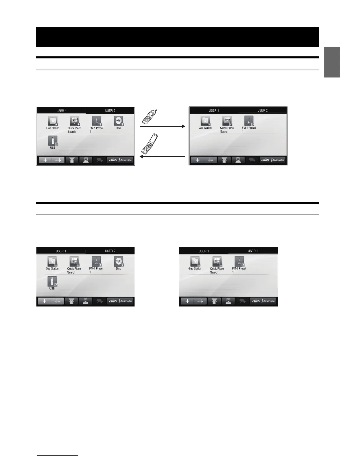 • If no Bluetooth device has been registered or if you want to switch users manually, touch the user tab key on the top of the screen.