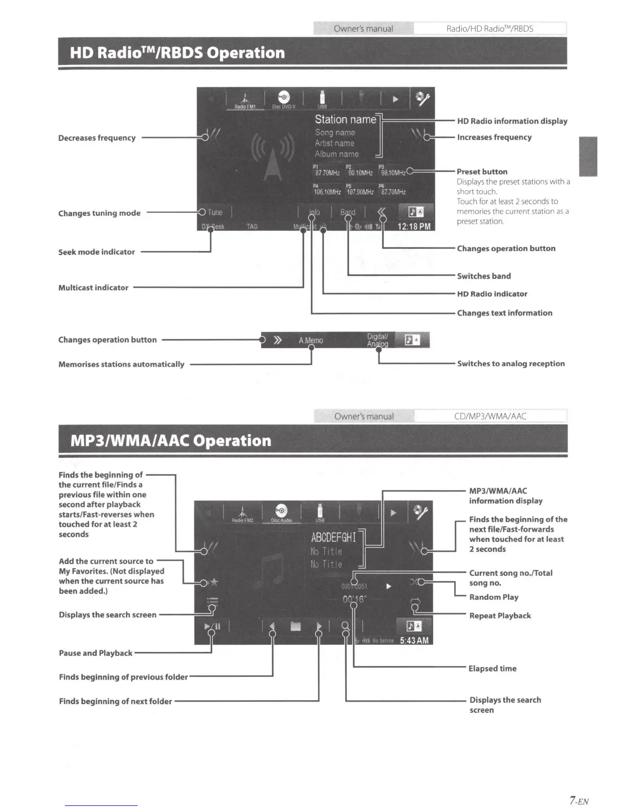 Alpine X009 - Radio and Media Operations; HD Radio;RBDS and MP3;WMA;AAC