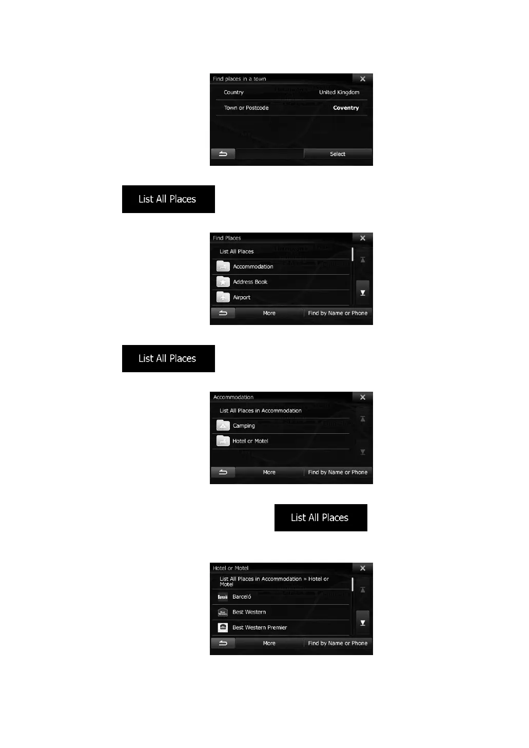 5. Select one of the main Place categories (e.g. Accommodation) or tap